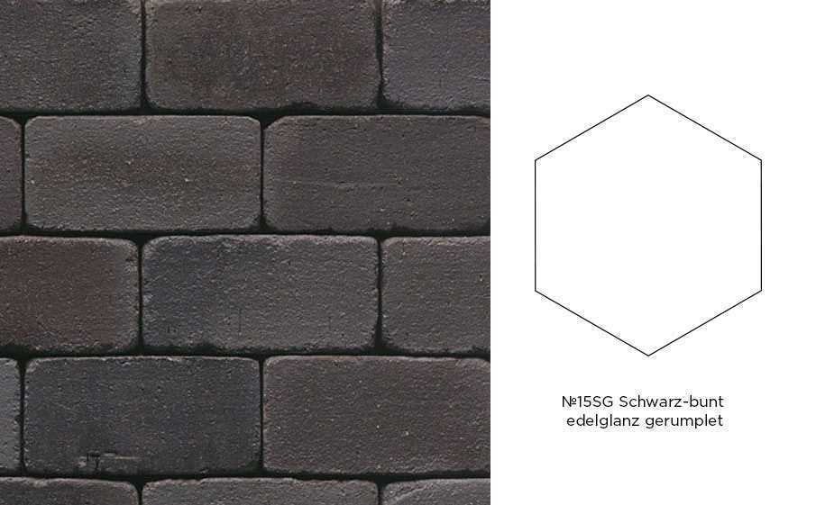 Клинкерная брусчатка Muhr №15SG Schwarz-bunt edelglanz gerumpelt, гексагон 200x20 мм
